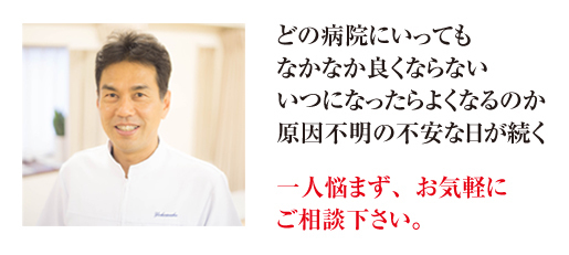 もしあなたが、これまで、同じように長年にわたりお悩みになっていたり、どこへ行っても改善されなかったとしても、どうかあきらめないでください。