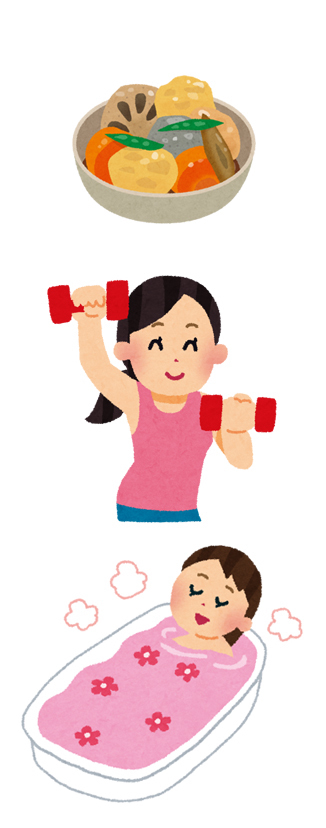 生活習慣を少し改善することで、冷え性が改善されていきます。一度に何もかも改善をしようと考えると、またストレスとなりますので、できることから少しずつ取り入れてみましょう。